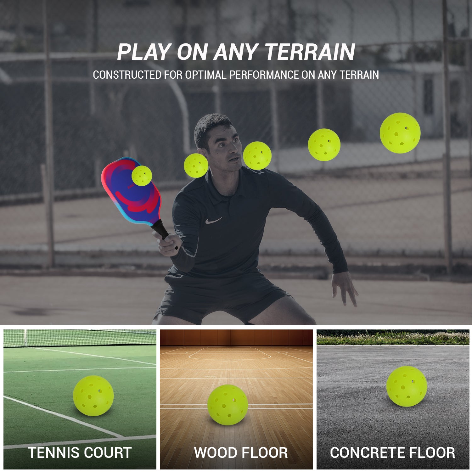 Versatile Use: Compatible with all paddle materials and surfaces, making these pickleball balls perfect for recreational play, practice sessions, and competitive matches