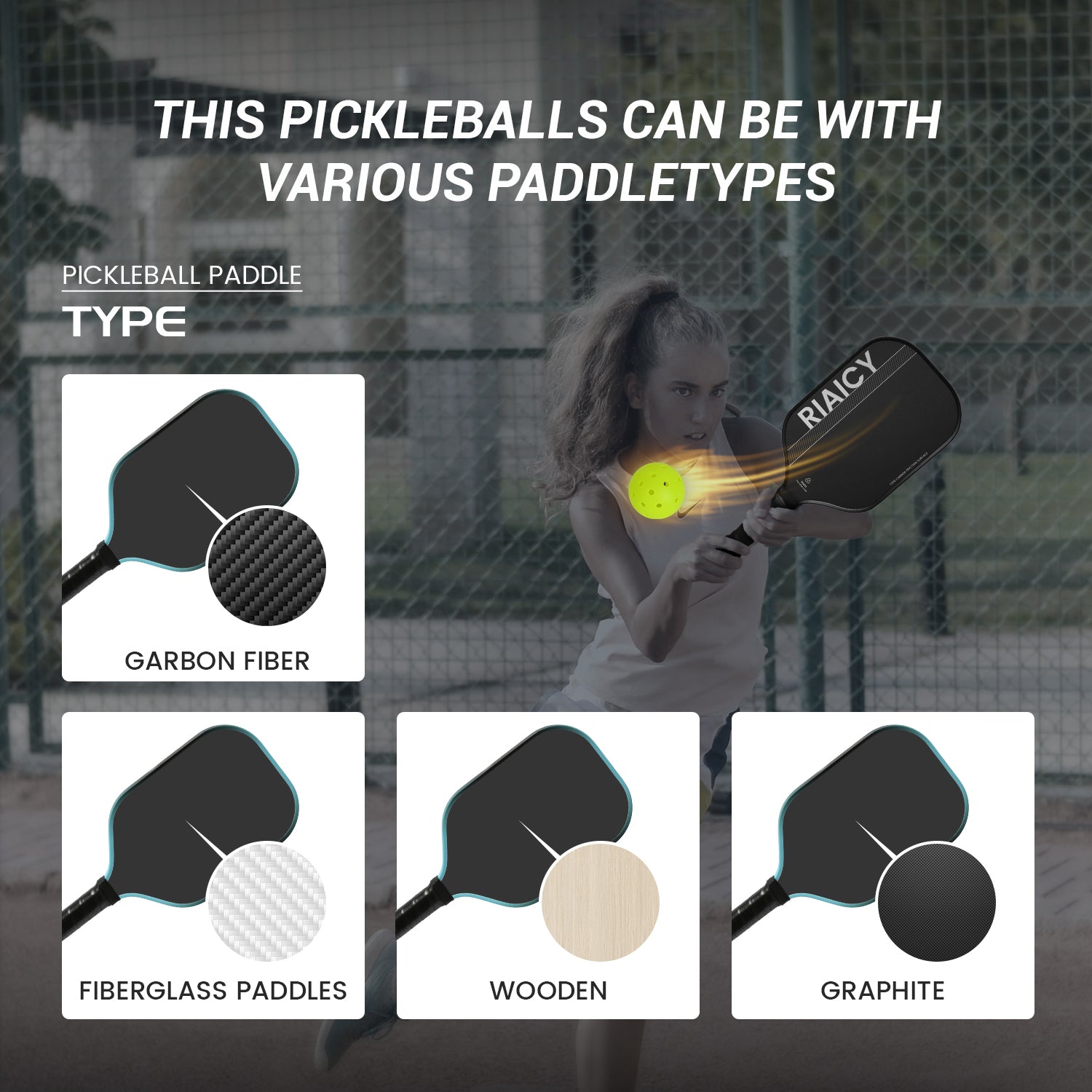 Riaicy 12 Pack Pickleball Balls Outdoor Quick Response X40 Pickleball Balls One-Piece Rotomolded Ball Equipment Construction for Any Paddle Materials