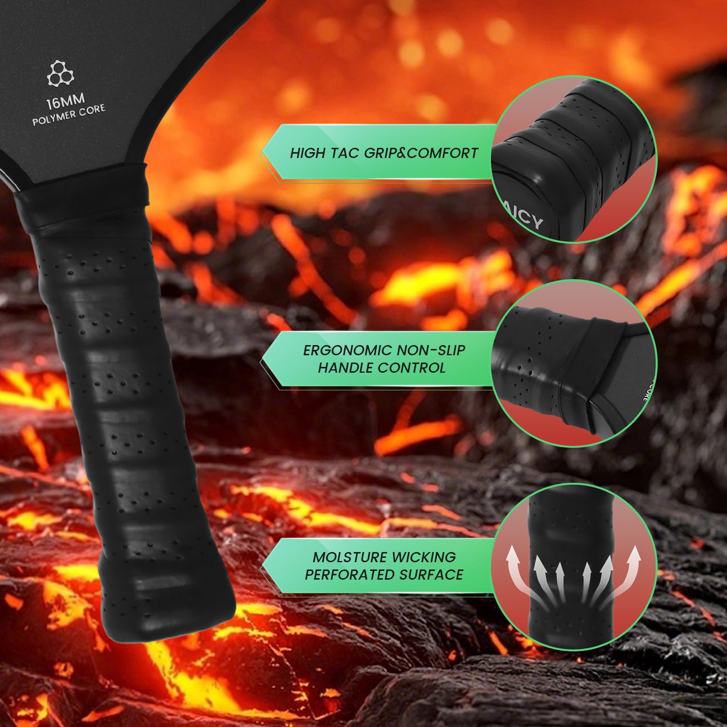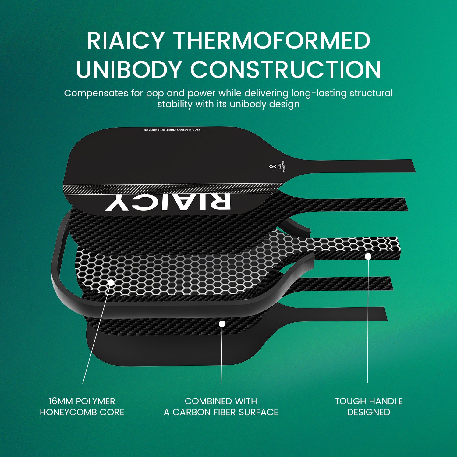 Enhanced shock absorption: The T700 pickleball racket carbon fiber with a 16mm polypropylene honeycomb core and edges, this paddle absorbs impact effectively, delivering smoother, more controlled shots for precision play